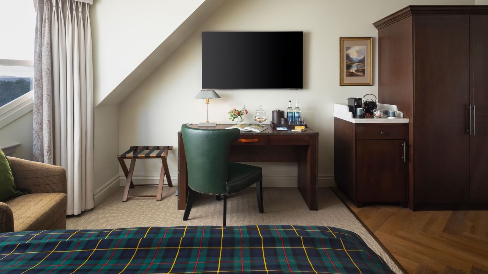 215 Sq Ft Double Up To 2 GuestsWith views over our beautifully manicured gardens, the signature rooms include a double bed, with luxurious ensuite bathrooms featuring rainfall shower facilities. These cosy rooms exudes elegance and Scottish heritage, showcasing luxurious timber flooring and walls adorned with rich oak panelling.